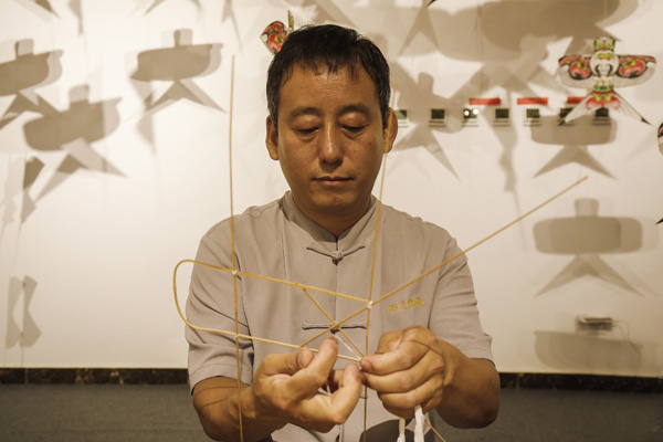 自幼随师承天津“风筝魏”的叔叔赵宗信学艺,赵艳强三十余载坚守纯手工制作。他独创的“弦上飞”“活眼儿”等特技风筝,通过机械装置实现自动飞舞、眨眼效果,其作品《宫灯》《二龙戏珠》被潍坊风筝博物馆永久收藏。疫情期间,他以钟馗、蝙蝠等图案创作“诸病退散”宫灯风筝,将传统技艺与时代需求结合。