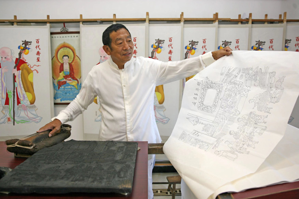 霍庆有 1952年出生,艺名:古一张。杨柳青木版年画已有600多年的历史,霍庆有先生自幼受父亲亲传,成为了天津一带唯一的勾、刻、刷、画、裱五项全能杨柳年画艺人。又投资数百万元把自己二百平米的住宅扩建为天津市唯一一家家庭作坊式年画艺术博物馆。担任中国文艺家理事、天津市文艺家学会理事、天津市政协书画研究会理事、中国木版年画研究基地委员。作品荣获省级、国家级各项大奖《浴婴图》、《百子图》、《奥运之门》等多件作品在各地博物馆及各大寺院收藏。2006年被联合国教科文授予“国际民间工艺美术家”称号。2007年被国家文化部命名为“国家级非物质文化遗产项目杨柳青木版年画代表性传承人”。2007年中国文学艺术联合会、中国民间文艺家协会授予“中国民间文化杰出传承人”荣誉称号。2009年被天津市授予“天津市中青年德艺双馨文艺工作者”荣誉称号。近年来出访德国、法国、美国、英国、俄罗斯等十多个国家,举办展览和讲座,得到友人的好评。 |