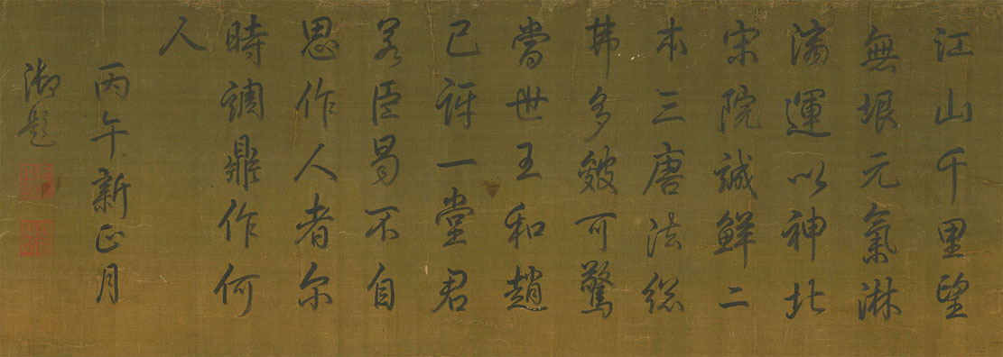 画卷前段上有清代乾隆皇帝的题诗,为七言绝句,作于乾隆丙午年(1786年)