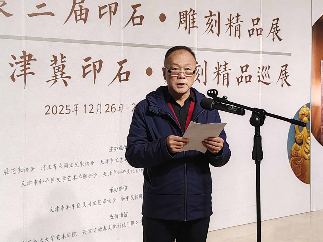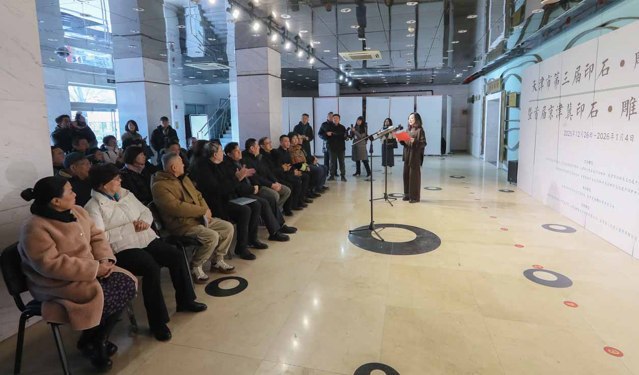 12月26日上午,“天津市第三届印石·雕刻精品展暨首届京津冀印石·雕刻精品巡展”在天津市和平文化艺术中心隆重开幕。本次展览首次汇聚北京、天津、河北三地艺术家的二百余件精品力作,标志着京津冀文化艺术协同发展进入深度交融的新阶段。