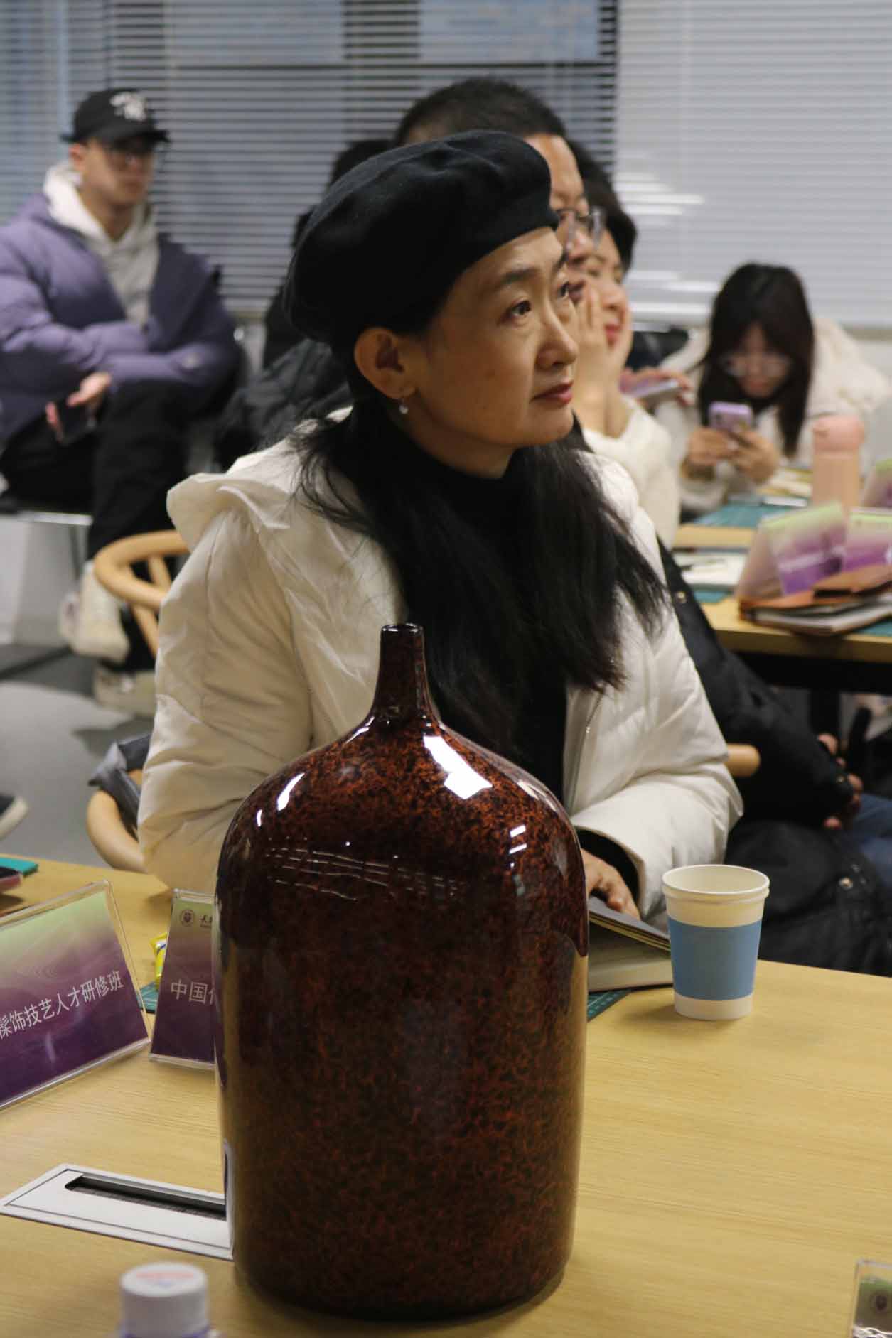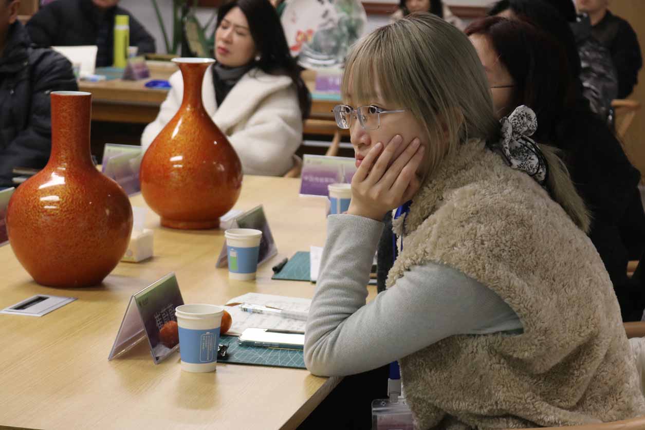 培训采用“课堂教学+实践教学+交流互动”三位一体的模式,确保教学实效。课堂上,业内知名专家、行业大师与高校师资联袂开展专题讲座,拆解理论精髓与行业前沿;实践中,专业教师与工艺技师现场示范、手把手指导创作,让学员沉浸式感受大漆工艺“黑如玄玉、红如丹砂”的材质之美与“工精于细,艺成于专”的匠作精神;同时,通过同行座谈、代表性传承人经验分享等环节,搭建高水平学习交流平台,促进技艺互鉴、思想碰撞。