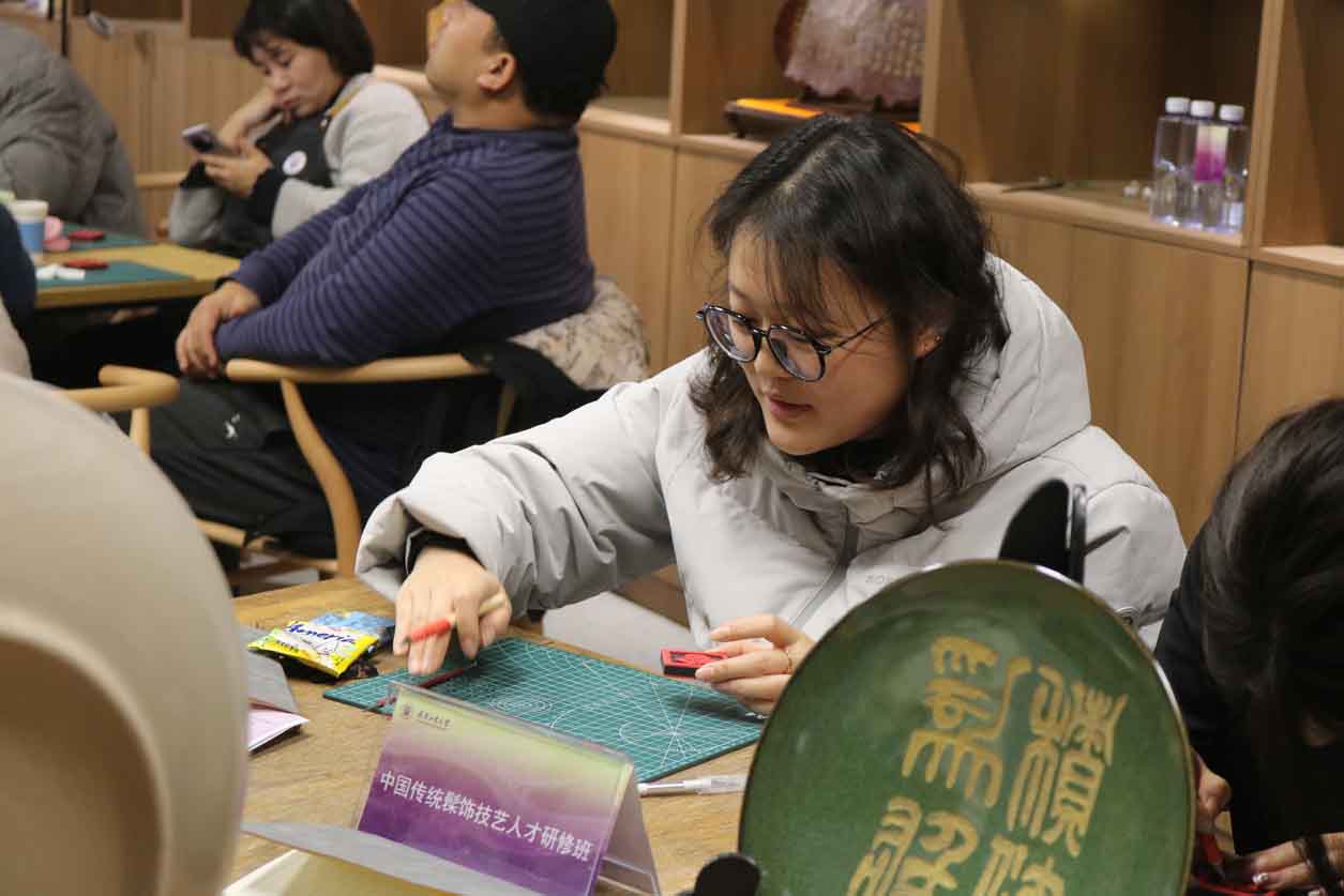 在课程设置上,研修班精心构建了兼具专业性与实用性的体系,既涵盖中国传统髹饰技艺理论、雕漆、剔红、金缮、刻瓷、贴镶、锔钉等经典工艺技法,全方位夯实学员技艺根基;又注重审美能力、艺术思辨与创新能力的多维提升,通过《非遗的数字活化与产业创新应用》、《非遗作为方法论:大漆工艺在当代艺术语境中的理论与实践研究》等专题研讨,引导学员探索传统技艺与当代生活、艺术创作的融合路径,践行“守正创新”的传承理念。