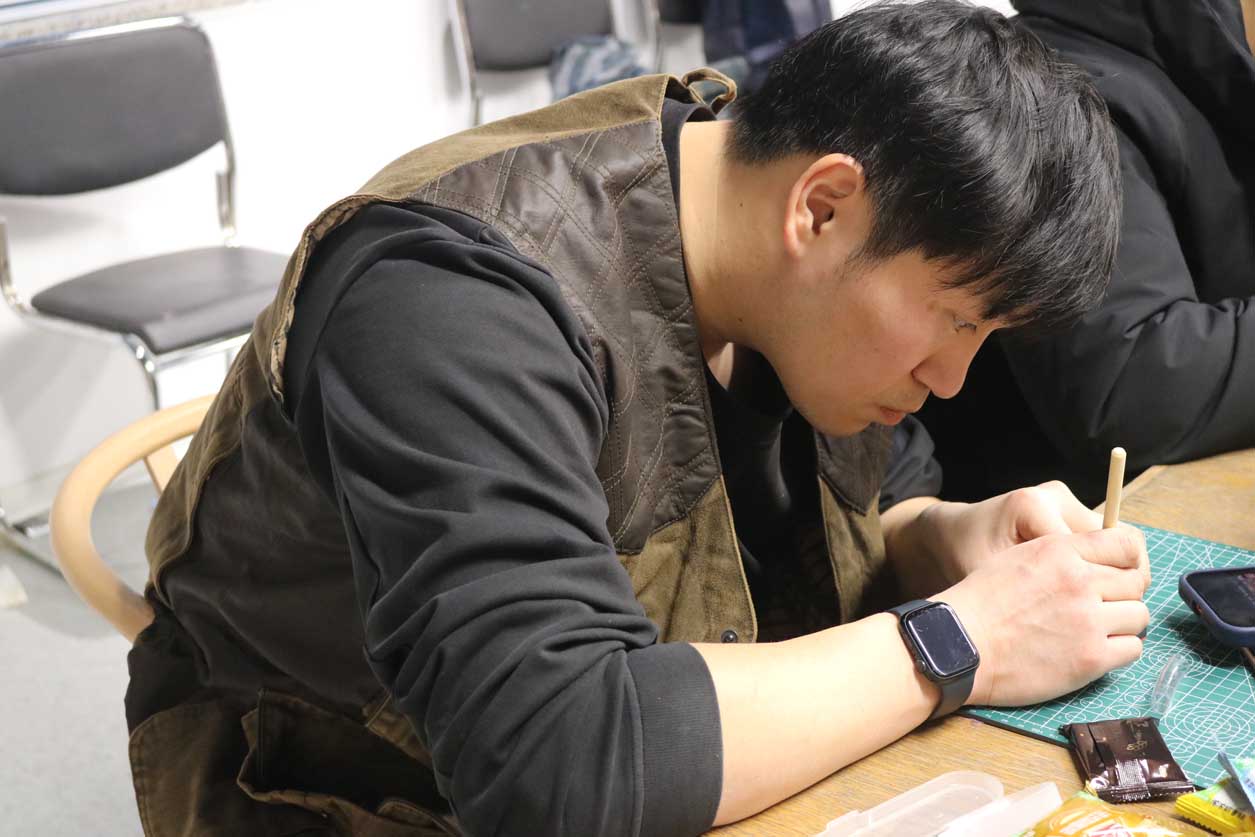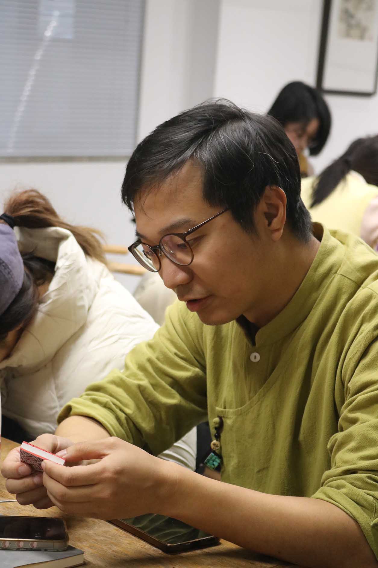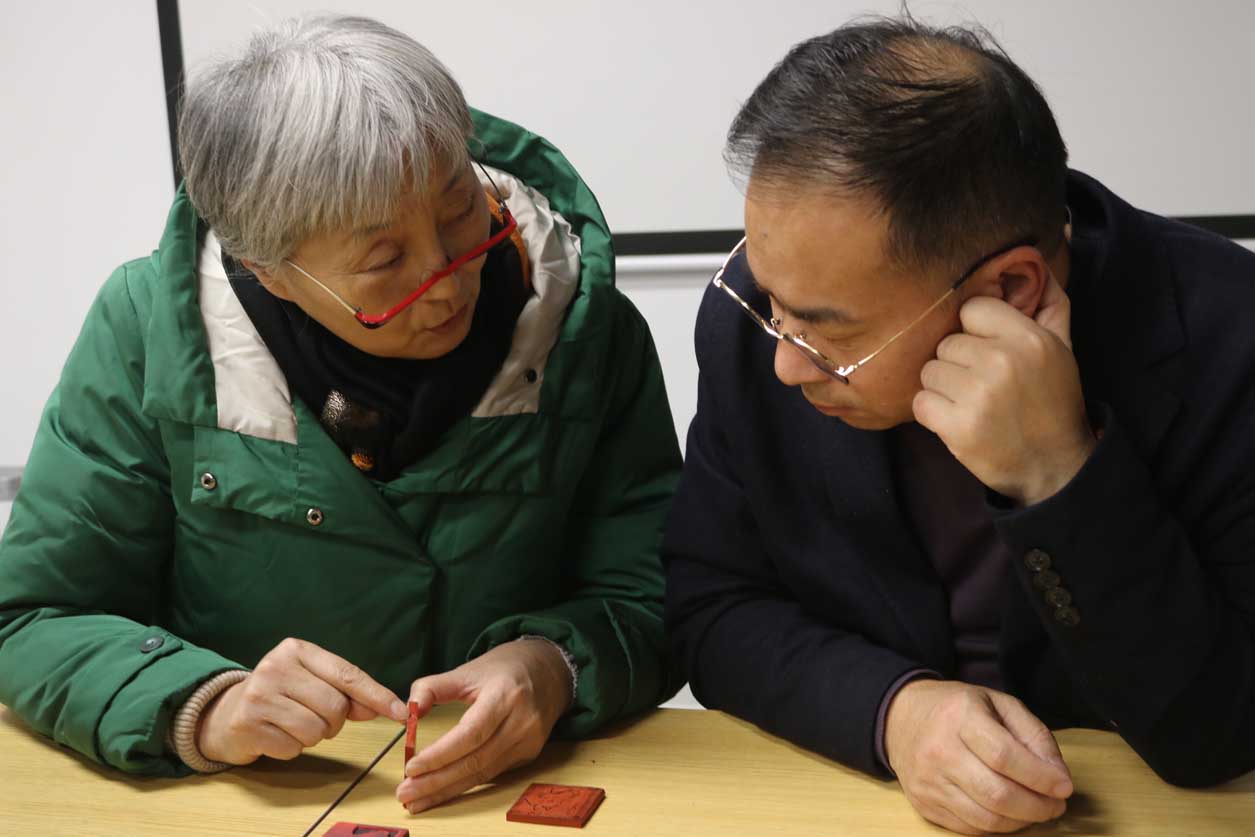 在技艺教学环节,朱江老师聚焦雕漆的完整工艺流程,从漆料制备、髹漆打底到雕刻塑形、打磨修饰,每一个步骤都结合实操细节细致拆解,尤其针对雕漆文字与锦纹的创作技巧展开专项指导。参与者在老师的带领下,亲身参与漆板雕刻实践,近距离感受雕漆 “慢工出细活” 的匠心所在,在动手实践中掌握核心技艺要点。