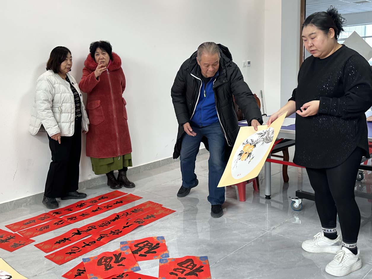 大家与农民们围坐在一起交流倾听他们耕耘劳作的故事,感受农耕文化的厚重底蕴。大家纷纷表示,以往的写春联活动多聚焦社区,此次走进农场,既能将文化祝福送到田间地头,让墨香浸润田园,又能亲身感受绿色农业的生机与质朴,让春联与画作承载的不仅是祝福,更搭建起城乡之间的真挚情谊。农场的生态之美、丰收之喜与现代农民的幸福生活,同时也为创作注入了鲜活灵感。真正体会到艺术来源于生活。让墨香与稻花香交融,让传统文化与农耕文明相遇。它不仅丰富了农民的精神文化生活,更在寒冬中传递着浓浓的温情与暖意。正如春联中所书,愿新的一年,春回大地家庭农场风调雨顺、五谷丰登;愿每一位朴实耕耘的劳动者收获满满、顺遂安康;愿中华优秀传统文化在城乡交融中焕发更持久的生命力,滋养出更多美好与希望。
