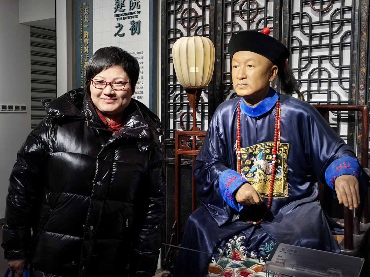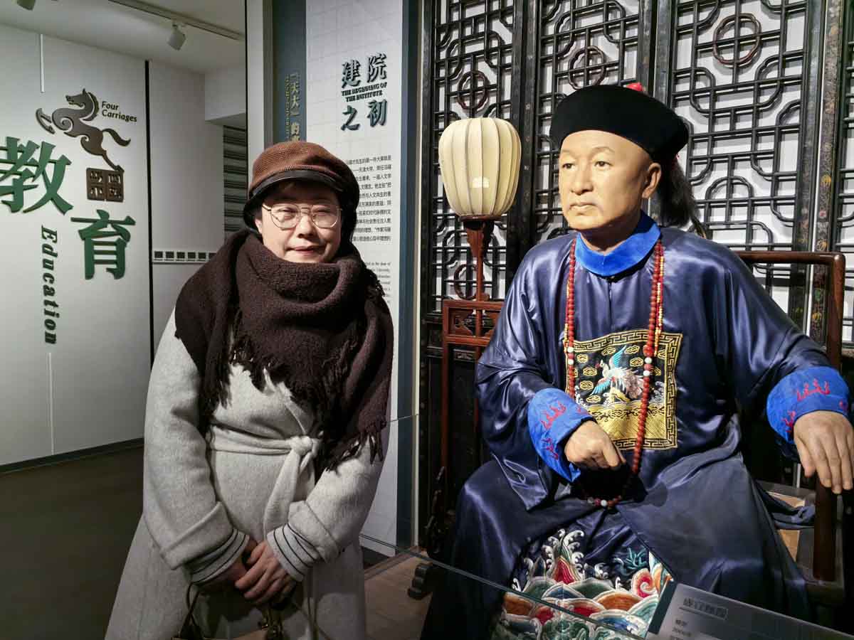 在“妙手丹青·民间绘画”展厅,一幅清代《冯氏祖先像》引发惊叹。这幅由无名画工创作的肖像画,以细腻的笔触和绚丽的色彩展现了民间艺术的巅峰水准。蒲娇教授介绍:“冯先生将家传珍品捐出,正是希望打破‘精英艺术’与‘民间艺术’的壁垒,让更多人看到中华美学的多元基因。”而在参观过程中,会员们还有幸目睹了尔宝瑞创作的盛宣怀蜡像。这尊蜡像栩栩如生,仿佛将历史人物鲜活地呈现在眼前,盛宣怀的神态、服饰细节都处理得极为精妙,让人不禁感叹艺术家的高超技艺,也透过这尊蜡像感受到了那个时代的历史氛围与人物风采。